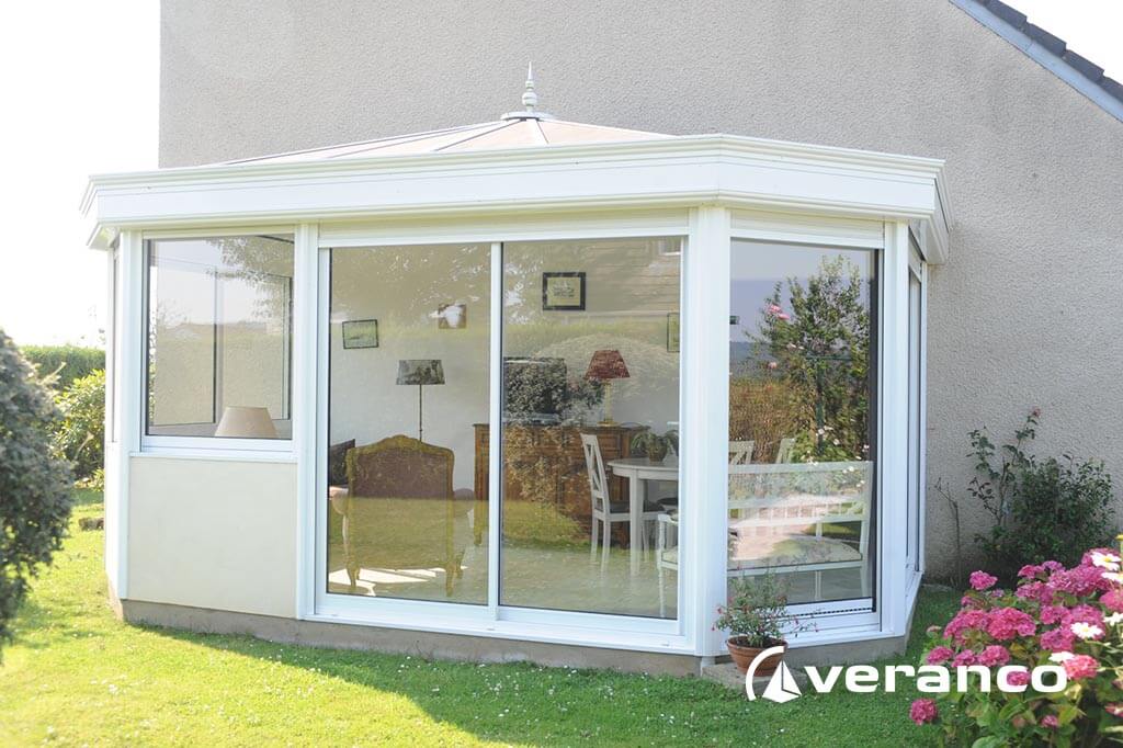 La Véranda Rubis est une véranda composée d'une toiture double pente et rayonnante. Les 2 angles coupés lui confèrent une esthétique harmonieuse. Le volume généreux de cette Véranda, la rend très agréable à vivre.